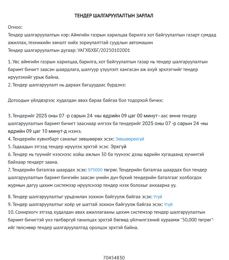 Тендер шалгаруулалтын дүн мэдээтэй энд дарж танилцана уу.